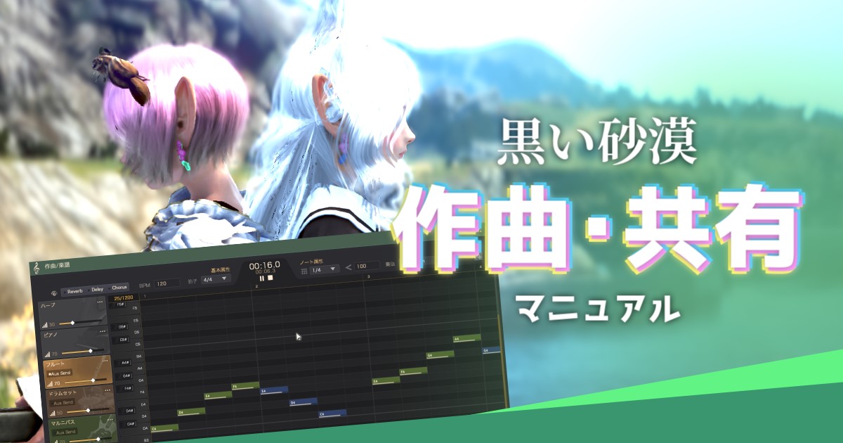 黒い砂漠で演奏するための楽曲を演奏・ダウンロード・作曲・共有の方法を簡単に紹介するページを追加しました。