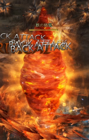 「このビウォンの一撃を受けてみろ!」とテロップが出ると、不可殺を中心にして「燃え上がる鉄」が召喚され、不可殺の方に寄っていきます。