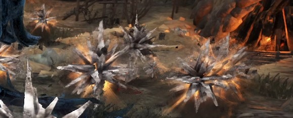 不可殺が咆哮をすると、不可殺の周辺に大量の「燃え上がる鉄」が出現します。